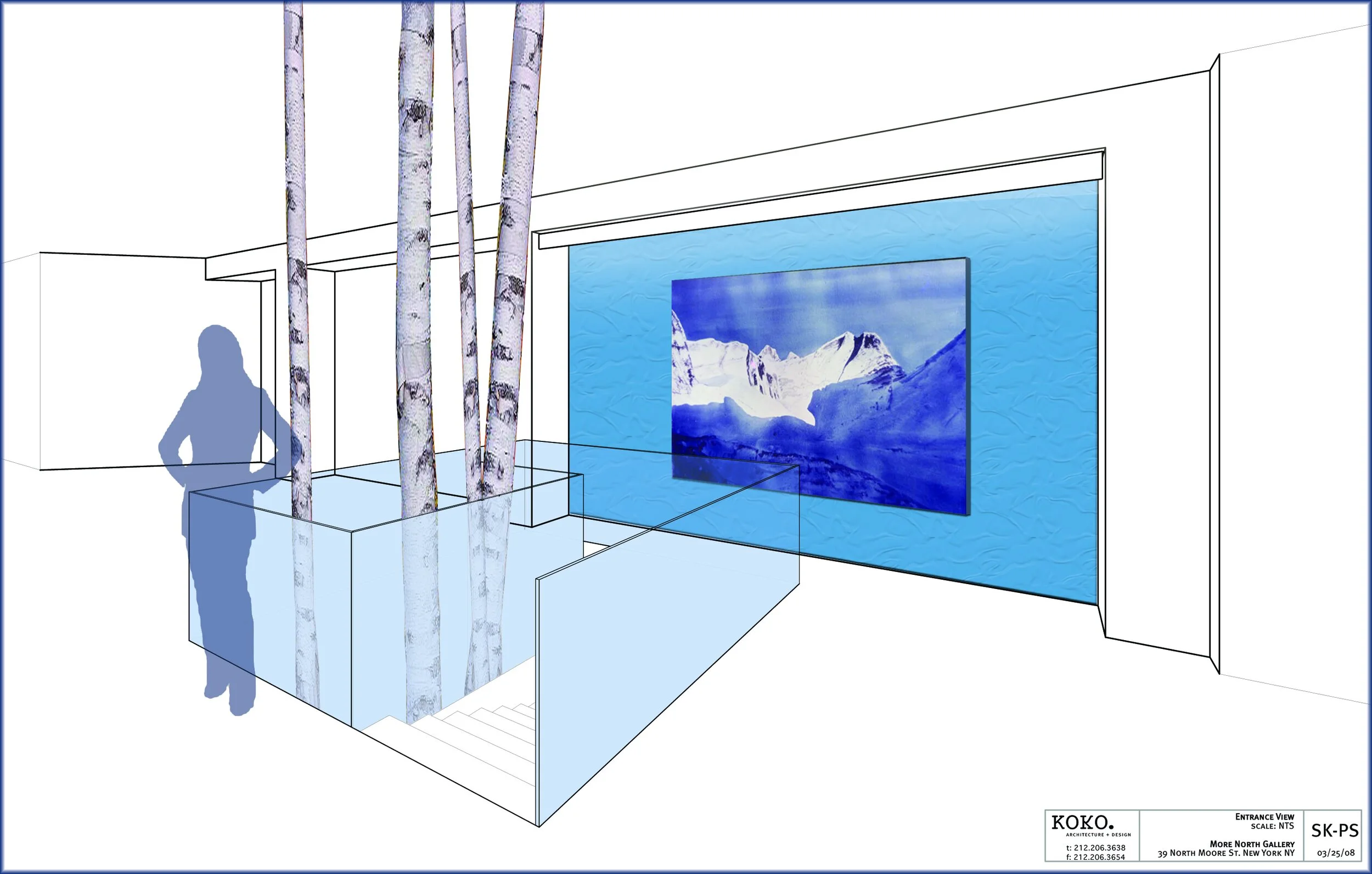 KOKO created a distinctive gallery space for More North that offers the sense of calm and serenity long identified with Nordic countries and their artistic traditions. Features include white concrete floors and floating paper-thin metal walls. 25-foot tall birch trees connect the ground floor with the lower level children’s gallery.